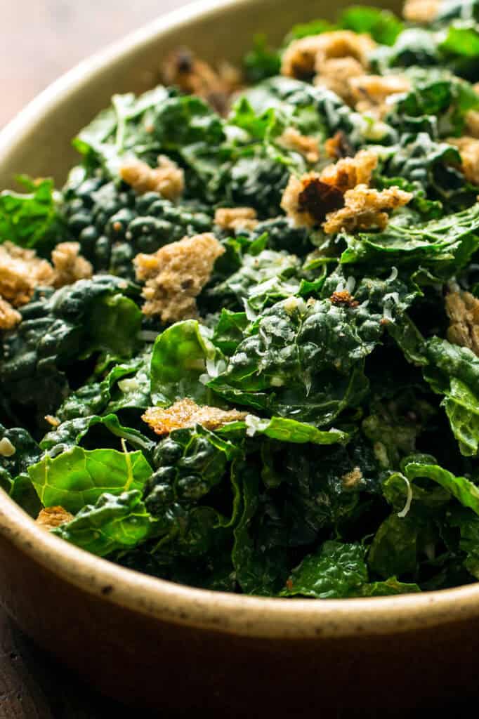 A healthy and satisfying shredded raw kale salad tossed in a vibrant lemon-garlic-pecorino dressing. Great for lunch or as a quick and easy side dish for dinner! You will find fresh kale (Tuscan, Curly, and Russian) at the market this week!